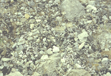 Clark Mountains, San Bernardino Co., California, USA. Near a gypsum mine. 35° 38.105' N latitude, 115° 30.744' W longitude, 1090 m elevation. The site had a very rocky and gravelly surface, with lichen crusts between the rocks. Date of sampling: 5 June 1998 by Johansen & St. Clair. Dominants vascular plants at the site: Ephedra