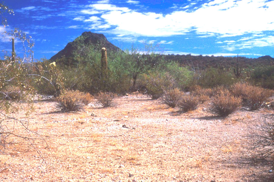 Oregon Pipe Cactus, Arizona, USA. 32° 11.935' N latitude, 112° 54.389' W longitude. Date of sampling: 29 June 2000. Vascular plants at the site: Larrea tridentata, bursage, Range ratany, Mesquite. Mean lichen crust thickness: Cover summary: Type Cover % Cover Chlorophyll a (ng/g): 3903.9 OP2